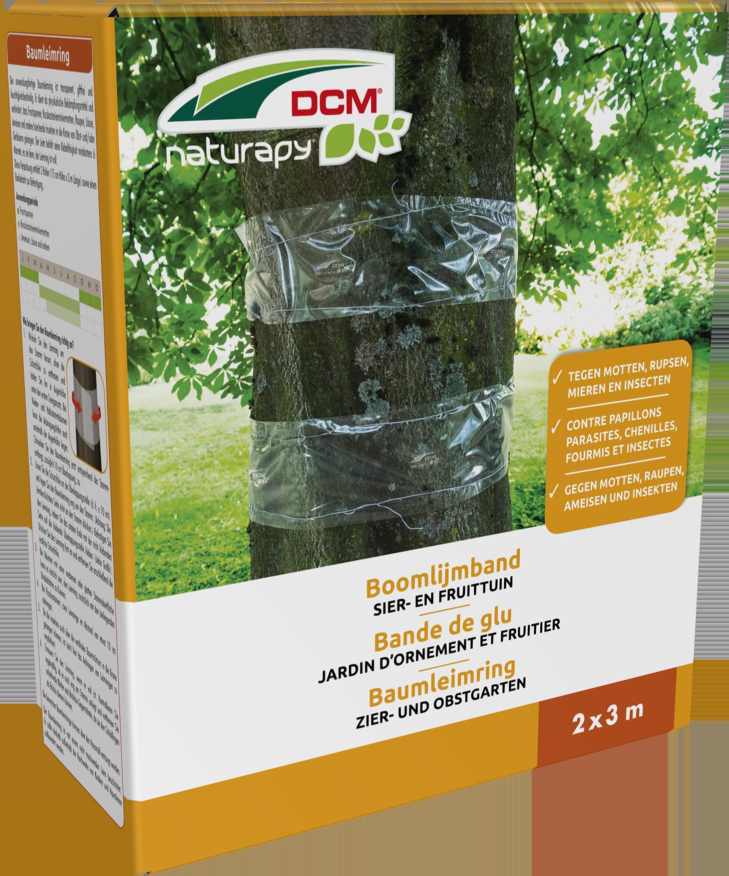 Bande engluée transparente et prête à l’emploi pour capturer et surveiller les insectes nuisibles présents sur les arbres fruitiers et ornementaux, notamment la mineuse du marronnier et les phalènes brumeuses dépourvues d’ailes qui grimpent sur le tronc des arbres. S’utilise aussi contre les fourmis et les autres insectes rampants. La colle ne sèche pas et résiste à la pluie.