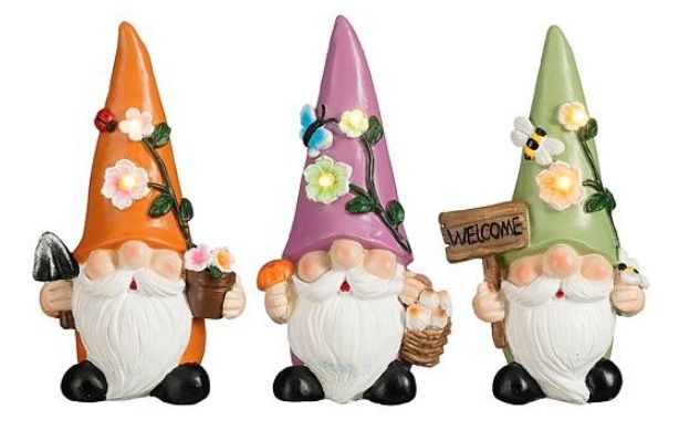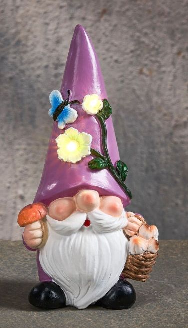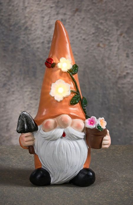 Gnome lampe solaire led vert, orange ou violet  blanc chaud – l.10 x b.6,5 x h17,5cm