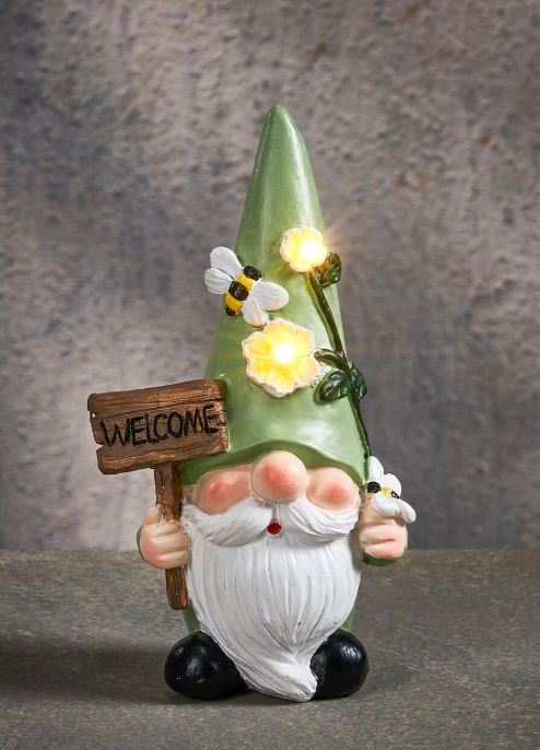 Gnome lampe solaire led vert, orange ou violet blanc chaud – l.10 x b.6,5 x h17,5cm