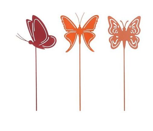 Pique de jardin papillon rouge f. orange marron – l13,5xh40cm
