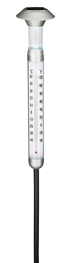 Thermomètre solaire en argent blanc et led – h.97 x d.12,5cm